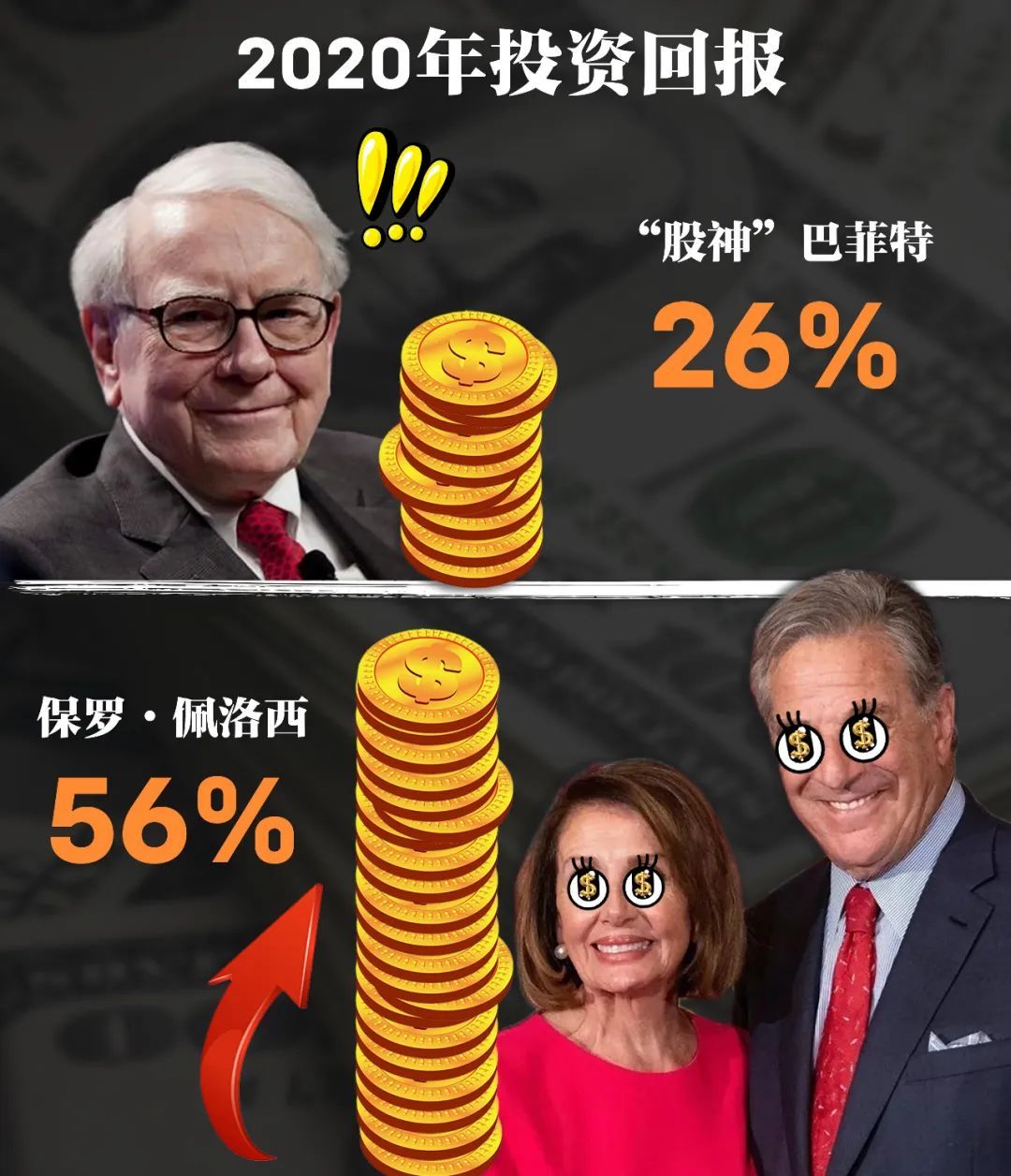据披露,美国会众议长佩洛西的丈夫在佩洛西掌权期间进行的投资回报率高达56%。果然,“跑赢巴菲特”,还得看“国会山股神”夫妇。