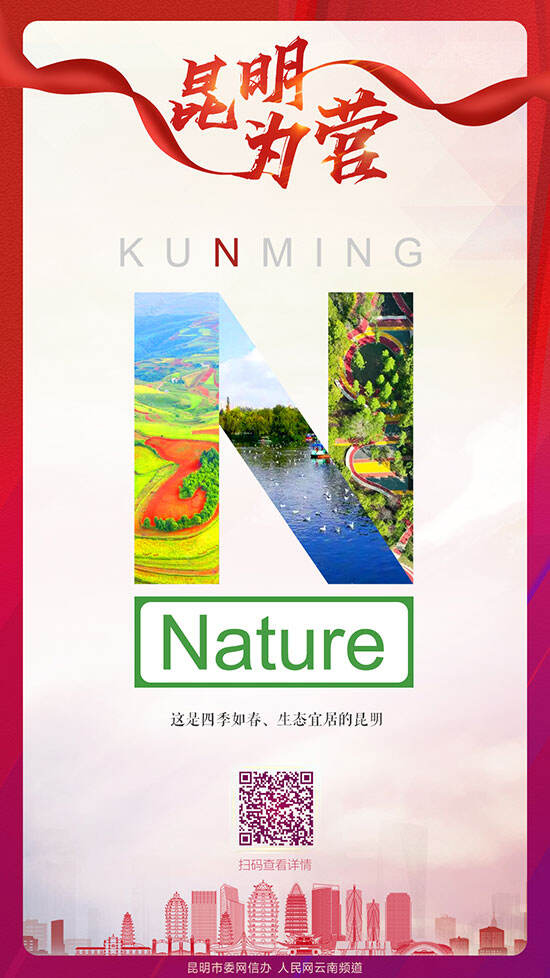 第三个字母N,即是Nature,这是四季如春、生态宜居的昆明。