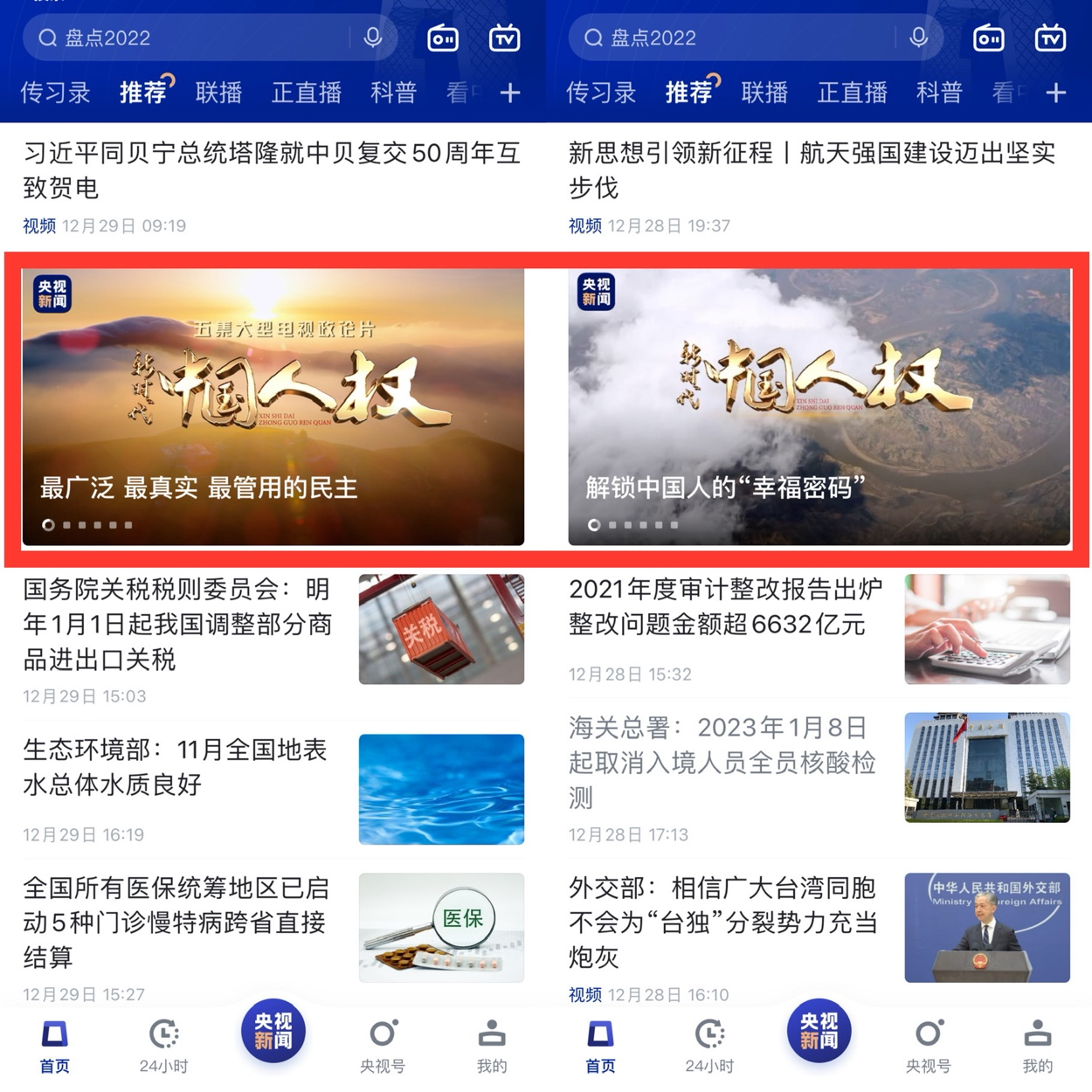 由中国人权研究会指导,中央广播电视总台华语环球节目中心摄制的五集大型电视政论片《新时代中国人权》,2022年12月26日至30日,在总台央视综合频道、中文国际频道播出,引发社会热烈反响,得到学界与舆论界广泛关注,成为讲好中国人权故事的一次成功尝试。中国人权发展理念、道路与成就成为近期网络“霸屏”“刷圈”的热议话题。