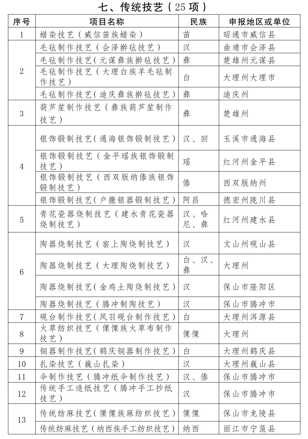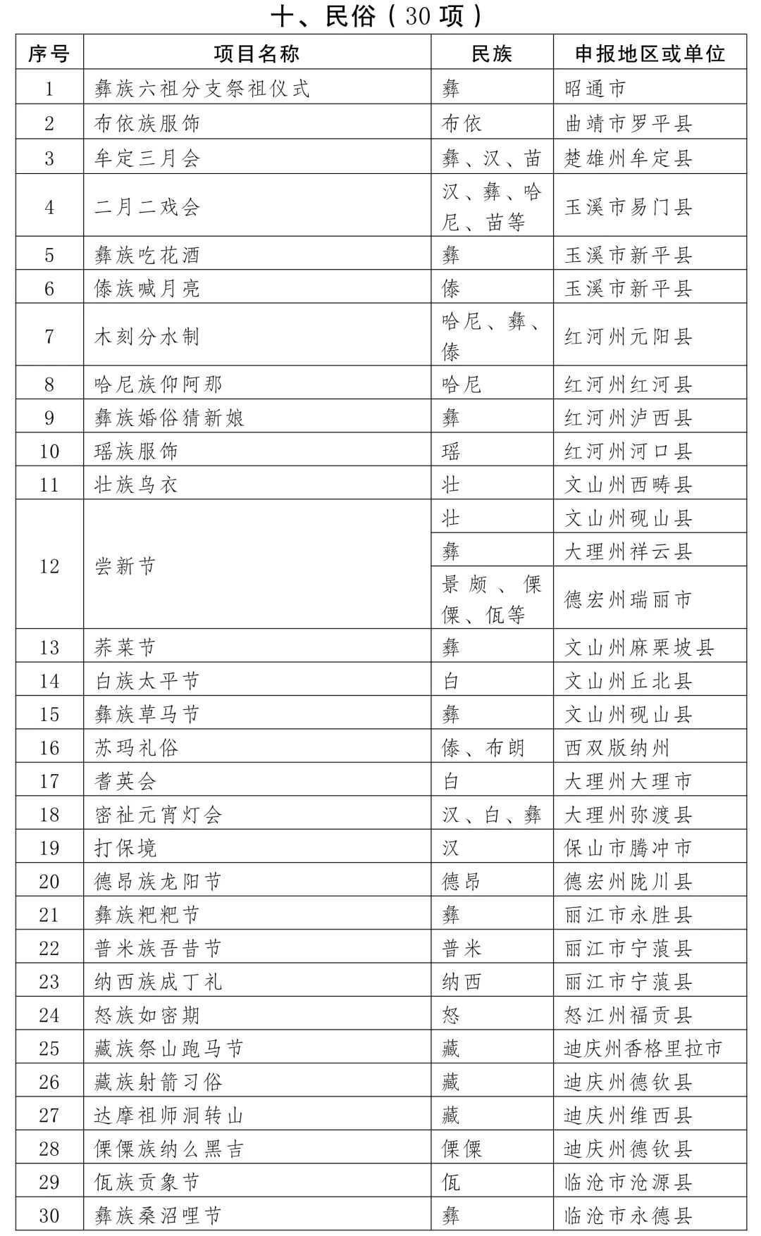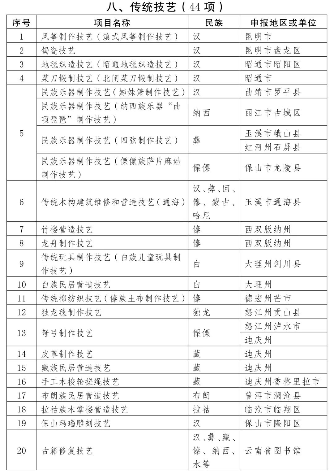 省人民政府批准省文化和旅游厅确定的云南省第五批省级非物质文化遗产代表性项目名录(145项)和省级非物质文化遗产代表性项目名录扩展项目名录(62项),现予公布。