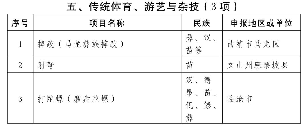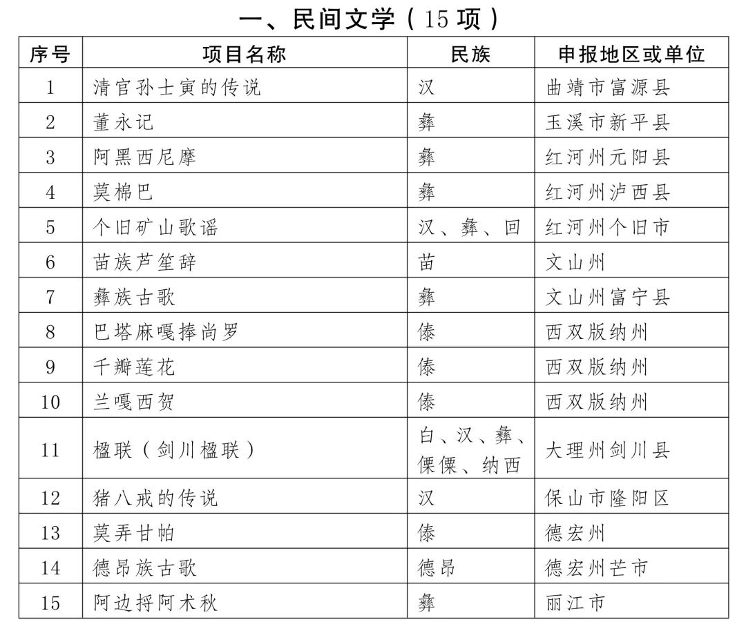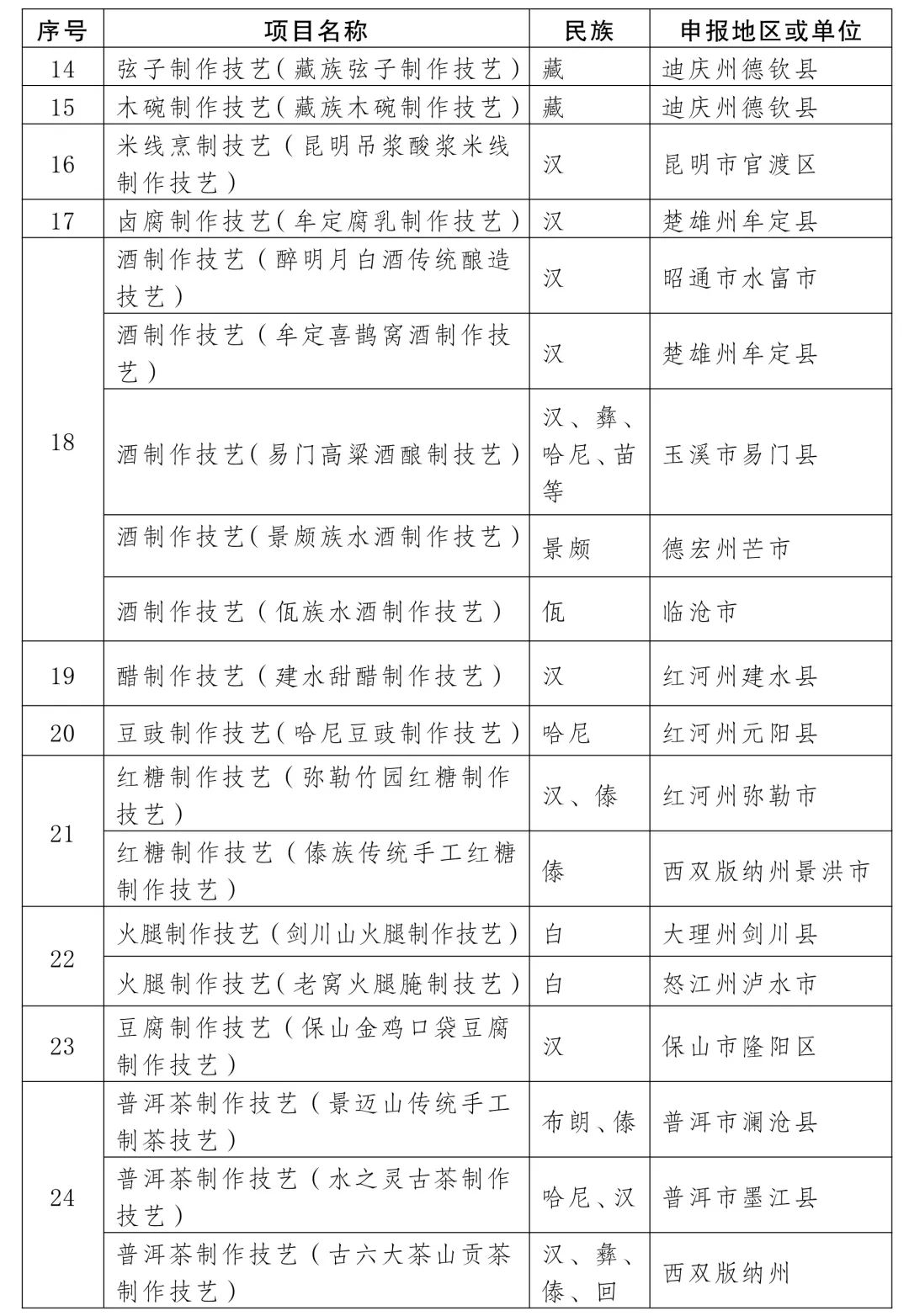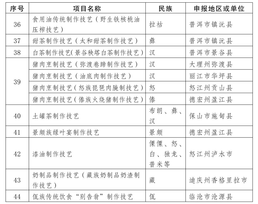省人民政府批准省文化和旅游厅确定的云南省第五批省级非物质文化遗产代表性项目名录(145项)和省级非物质文化遗产代表性项目名录扩展项目名录(62项),现予公布。