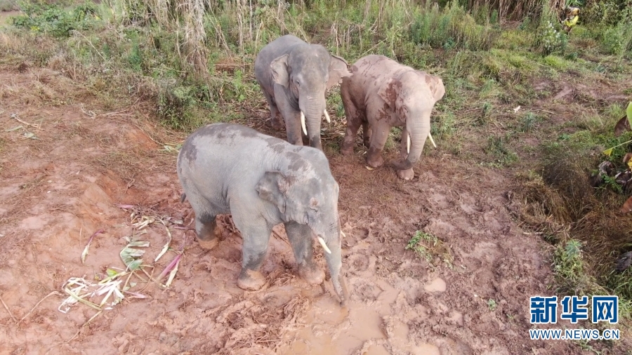 三头长着漂亮象牙的公象(资料图)。新华网发(普洱市林业和草原局 供图)