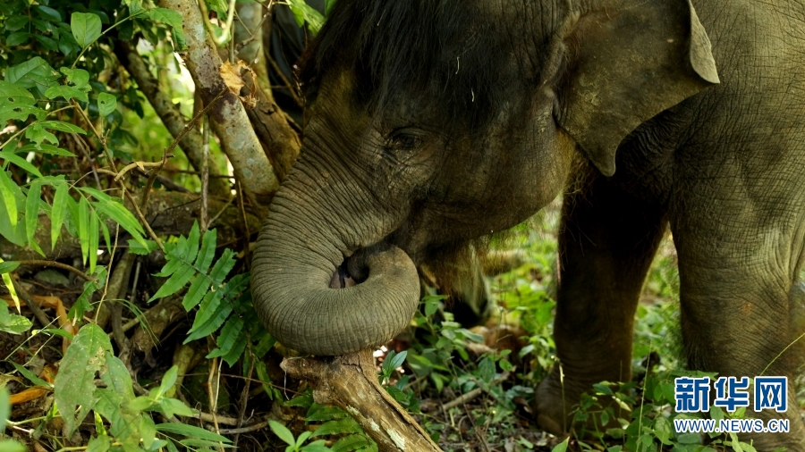 随着年龄增长,小公象逐渐长出漂亮的象牙(2021年6月7日摄)。新华网发(云南省森林消防总队 供图)