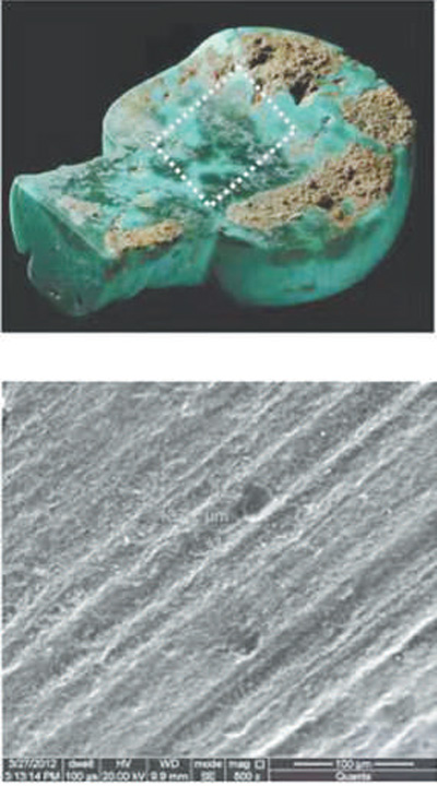 二里头的绿松石微痕研究,放大后显示的磨痕。