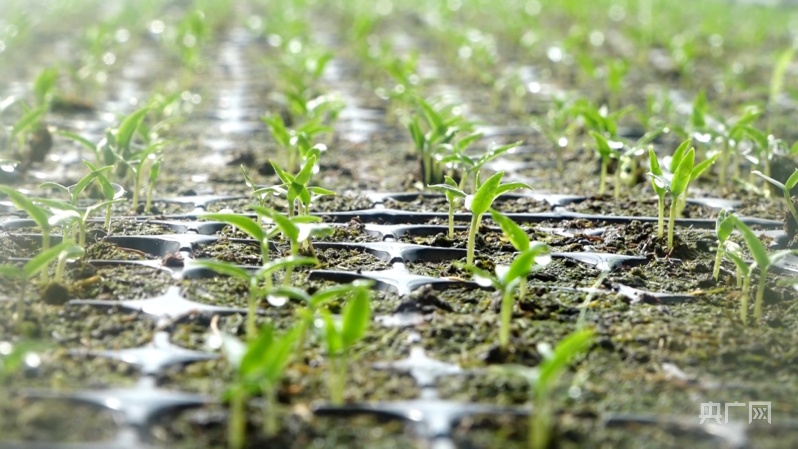 一排排育苗台上,绿油油的蔬菜苗格外诱人,向人们传递着“春”的气息。一旁,育苗机器不停转动,工人们忙着进行穴盘育苗,一派农忙的景象。