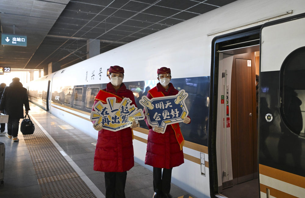 祖国西北角,乌鲁木齐站装点一新,喜庆的窗花、大红的灯笼和中国结为踏上旅程的人们带来暖意;西南山区,复兴号“绿巨人”在新成昆铁路上飞驰,彝族列车长阿衣布卡带来“库史木撒”(新年好)的问候,让车厢内欢声笑语;华南暖冬里,高铁枢纽大站广州南站,人潮涌动的火热场面再次重现,旅客手上拎着大包小包,洋溢着回家的喜悦……