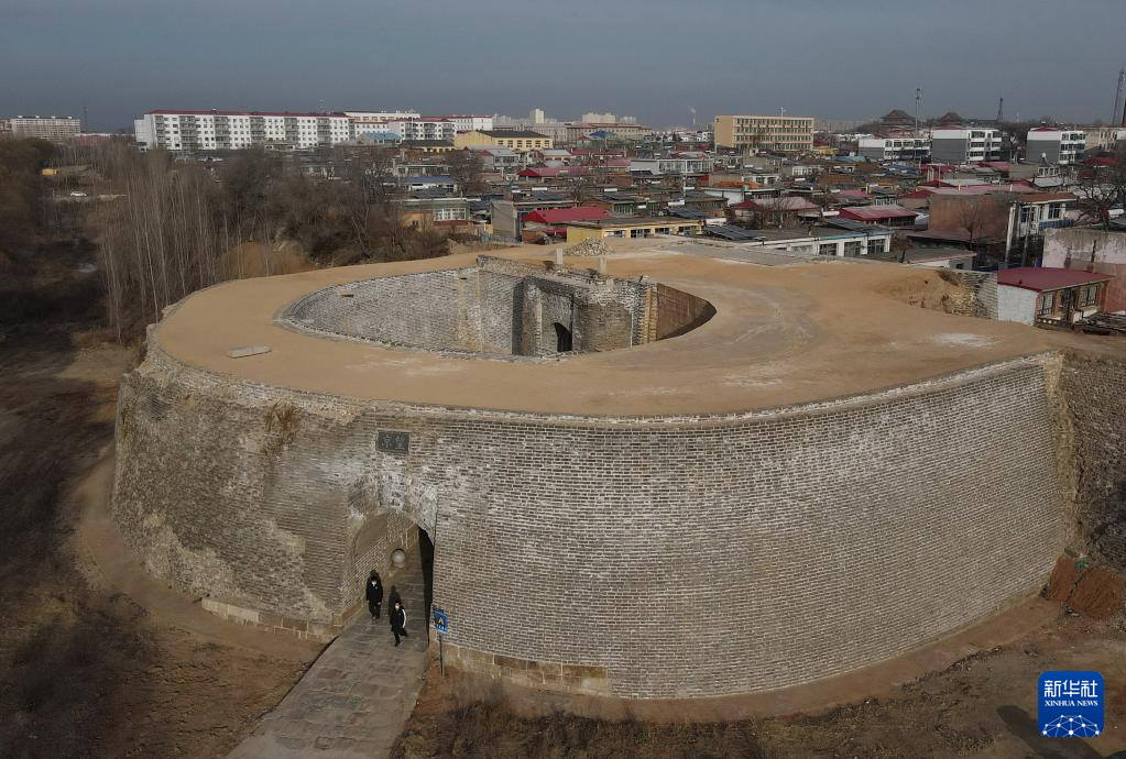 1月7日拍摄的卢龙县城的明代永平府城墙西门瓮城(无人机照片)。新华社记者杨世尧/摄