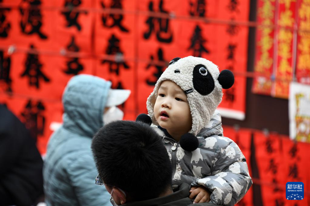 1月8日,一名小朋友在李村大集上好奇张望。新华社记者李紫恒/摄