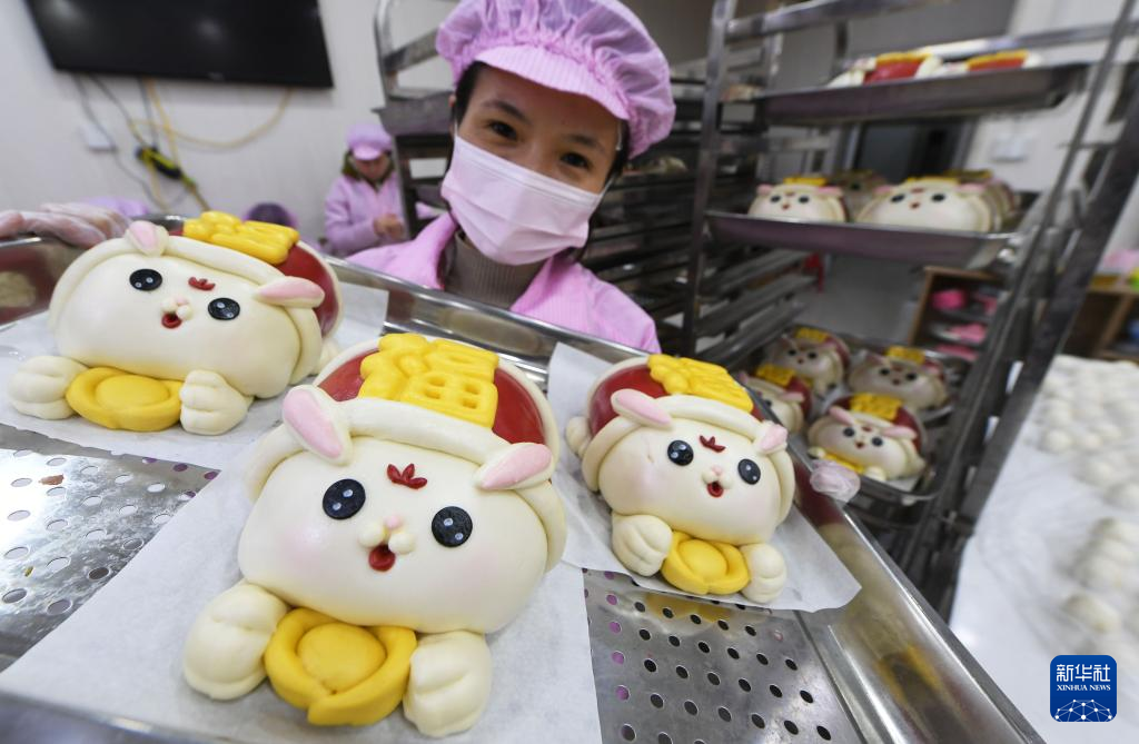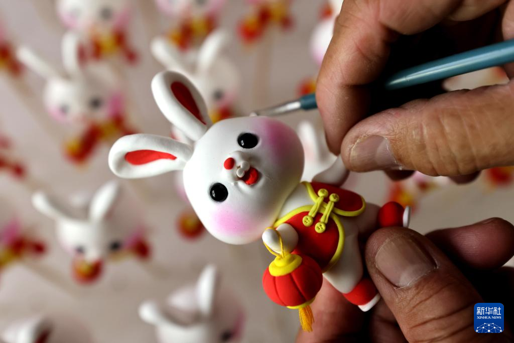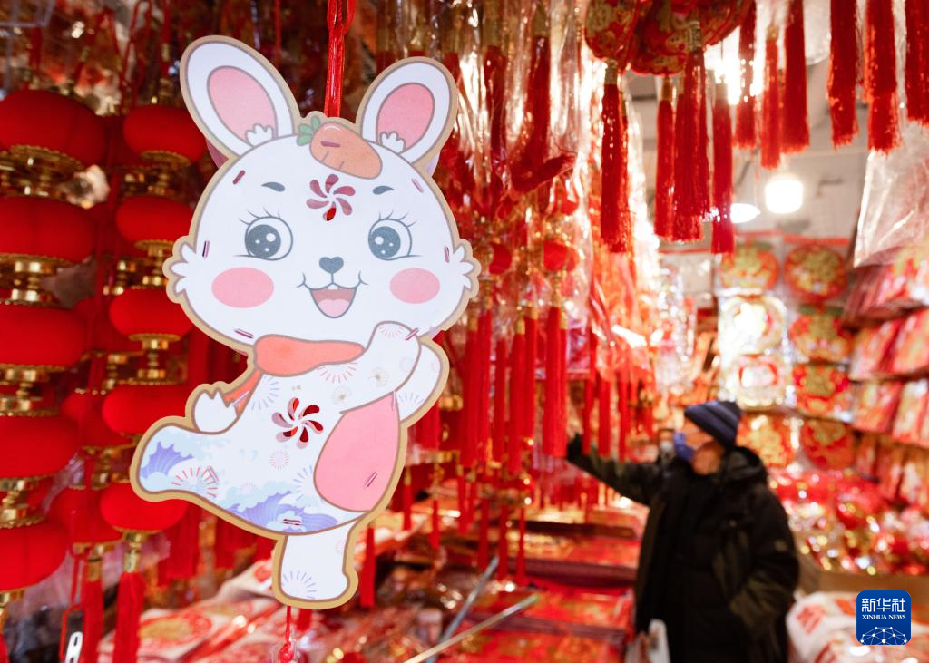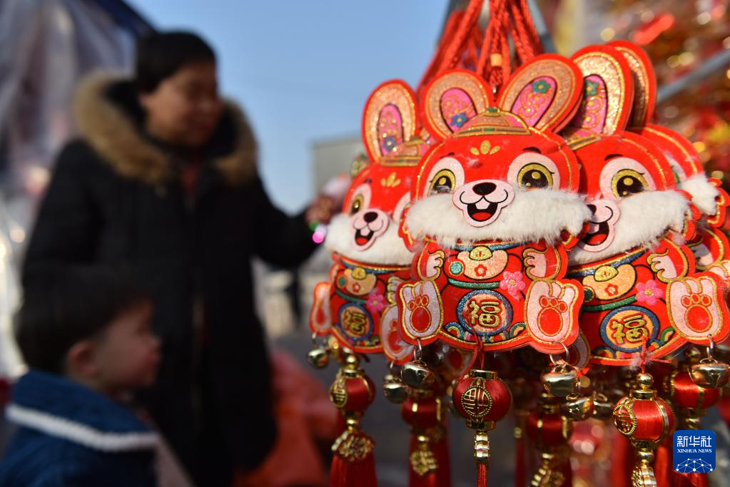 兔年春节临近,各地年味渐浓,以生肖兔为主题的各类产品受到人们青睐。
