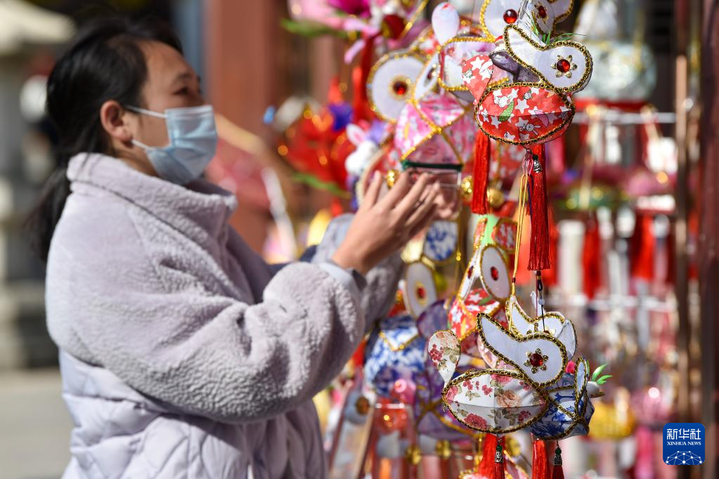 1月11日,游客在江苏南京夫子庙景区选购兔灯。新华社发(方东旭/摄)