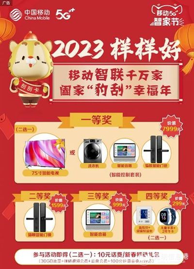 随着时间一分一秒地过去,通用流量、会员权益、专属服务等实惠好礼,以及大彩电、智家产品、儿童手表等家居好物,正不断地被送到广大用户手中,如果你也想用好运刮“豹”幸福年,就快来参与云南移动“5G智家节”吧。