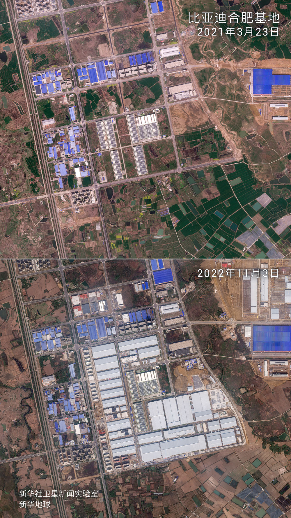 遥感卫星跟踪拍摄显示,比亚迪合肥基地建成规模快速扩大。