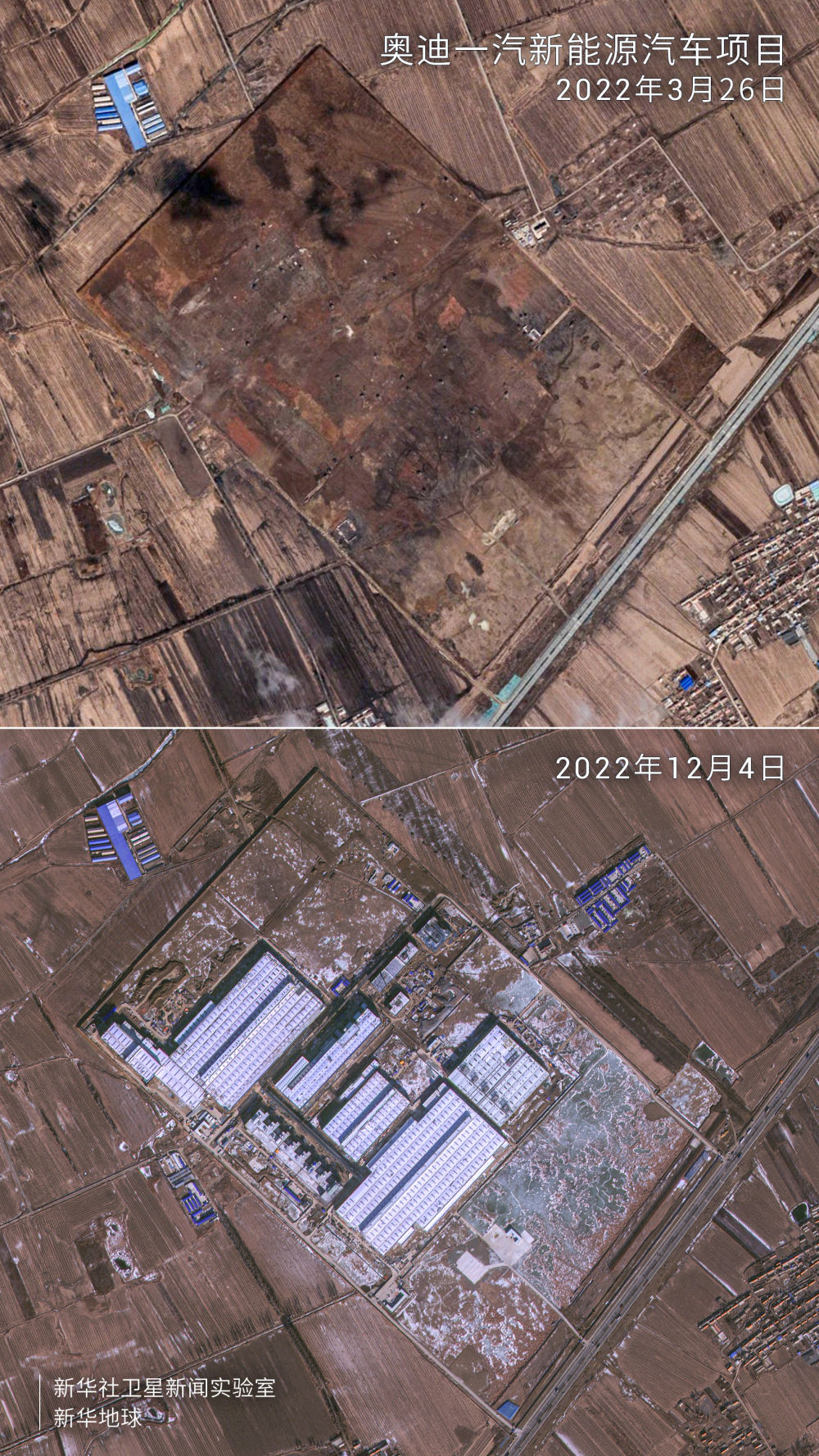 卫星俯瞰奥迪一汽新能源汽车项目建设进度。