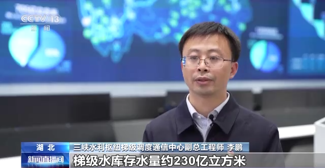 三峡水利枢纽梯级调度通信中心副总工程师 李鹏:截至2022年底,梯级水库存水量约230亿立方米,蓄能约230亿千瓦时。为下游群众生产生活用水储备了充足的淡水资源,为电力保障做足了充分准备,充分发挥了能源供应“稳定器”和“压舱石”作用。