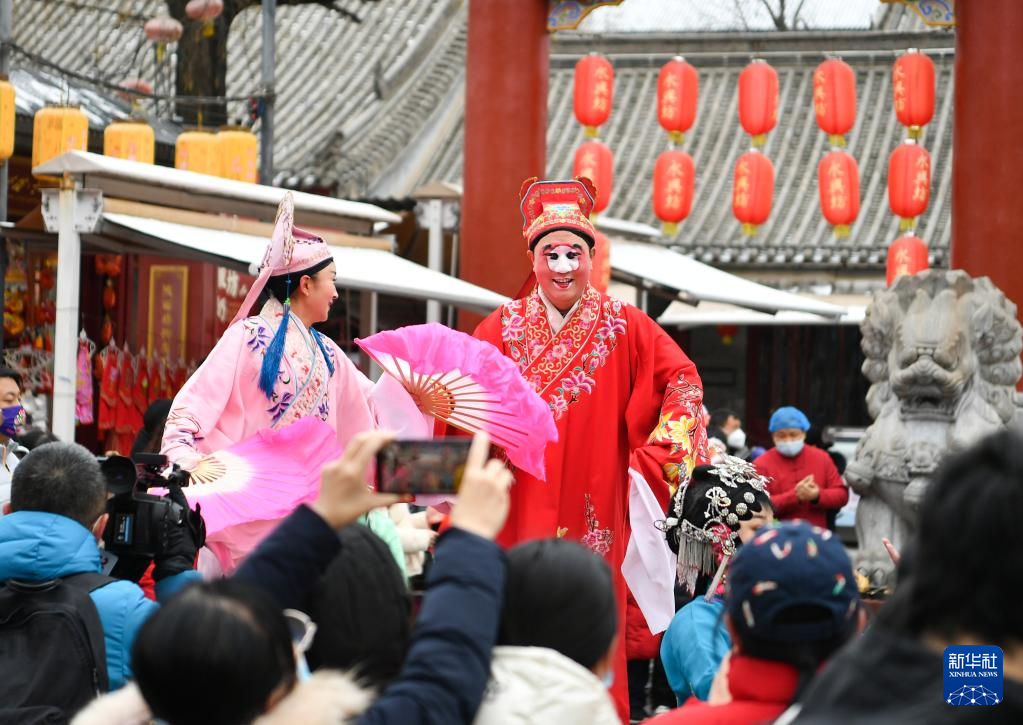 1月14日,演员在西安市永兴坊景区表演传统社火。新华社记者张博文/摄