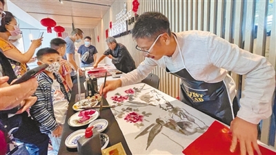 中国文化中心张灯结彩,一派喜气祥和的氛围。在春节民俗文化体验区,来自中马两国的民间艺人、艺术家和当地民众一起写春联、绘福字、剪窗花、捏面人、拓年画、品茶艺、画水墨画、制作拨浪鼓。每个展位前都挤满了观众,他们在老师手把手的指导下学得不亦乐乎。