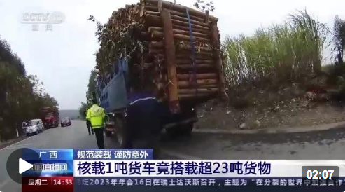 在检查过程中交警还发现,驾驶人欧某并未将车上的货物绑紧系牢,只是简单地用几根木头相互卡住,在这种情况下,木头一旦在车辆行驶过程中掉落,极易砸到周围的车辆及行人,引发交通事故。交警依法对驾驶人欧某的违法超载行为处以罚款2000元,驾驶证记6分。