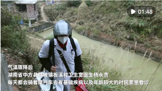 临近年关,外出务工人员陆续返乡。在湖南省中方县铁坡镇板溪村,村医杨永贵骑着摩托车,挨家挨户为农村有基础病的群众接种疫苗、做抗原检测,采取中西医结合的方式对症施治。