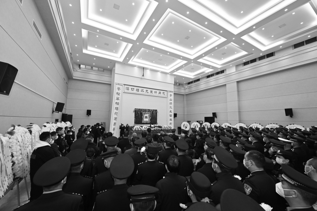长歌当哭送战友、青松垂泪祭英灵!1月17日,龙玉坤同志遗体告别仪式在昆明市殡仪馆举行。云南省公安厅代表向家属转达了厅领导的深切慰问,昆明市公安局领导和全市公安机关民警辅警代表,以及龙玉坤同志生前好友、群众共千余人,怀着无比沉痛的心情为他送别。(春城晚报—开屏新闻记者 马雯 昆明市公安局供图)