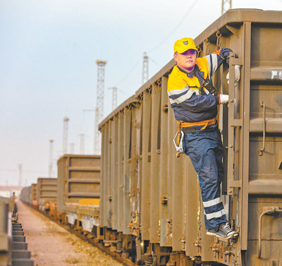 每逢迎峰度冬时期,杨智和工友们的作业量都比平日增加30%以上,每个白班和夜班班组都要编组、解编10列列车,每列列车有105节车厢。“我们站南北距离接近2公里,有22条列车道,每天在站场里往返五六趟,算一算,我们每天最少要走三万步,常常半个月就穿坏一双鞋。”杨智笑道。这些数字背后,是杨智和工友们日复一日的不畏艰辛、兢兢业业。