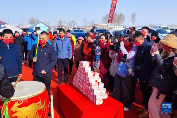 1月17日拍摄的内蒙古自治区鄂尔多斯市达拉特旗白泥井镇侯家营子村官牛犋社分红现场。 新华社记者 贾立君 摄