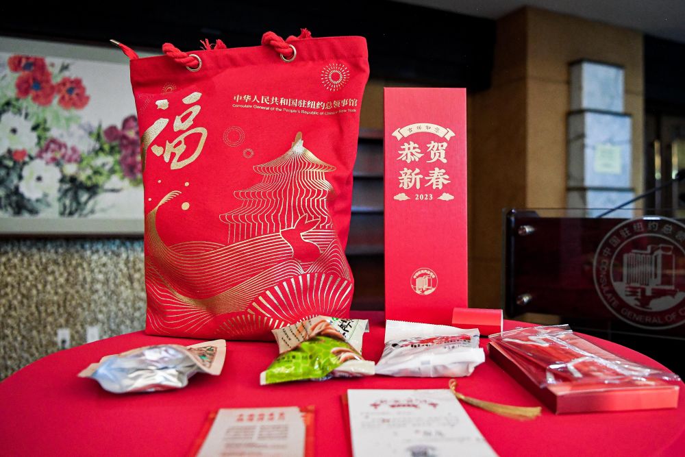 中国驻纽约总领馆早在半年前就启动了“春节包”准备工作。独具中国特色的帆布包内,不仅有福字、对联、花生、瓜子等,还有医用口罩以及总领馆领事保护和公共外交宣传卡,叮嘱同胞们节日期间不忘防疫,注意人身和财产安全,度过一个健康平安、踏实温暖的兔年春节。