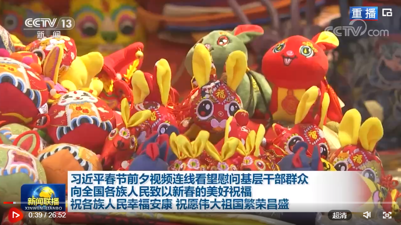 1月18日,在中华民族传统节日春节即将到来之际,习近平总书记通过视频连线看望慰问基层干部群众,向全国各族人民致以新春的美好祝福,祝各族人民身体健康、阖家幸福、事业进步、兔年吉祥!祝愿伟大祖国繁荣昌盛、国泰民安!