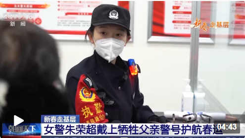 今天的新春走基层,让我们认识一位00后的女警朱荣超。030695,曾是她烈士父亲的警号,父亲的警号在经过八年的封存之后,终于由女儿重启。在春运的人流中,她外形文弱,却步履不停,帮助旅客平安踏上归途,她用青春擦亮父亲的警号,传承着人民警察的使命和担当。