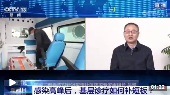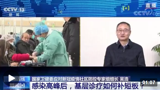 新冠病毒感染高峰已过,但相关诊疗,尤其是基层医疗机构、农村地区医疗机构提升救治能力的工作并没有结束,如何提升基层诊疗和服务能力? 今晚《新闻1+1》邀请国家卫健委应对新冠疫情社区防控专家组组长吴浩,共同关注:感染高峰后,基层诊疗如何补短板?