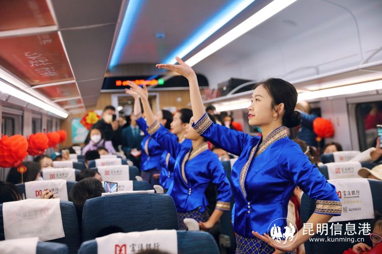 昆明信息港讯 记者上官艳君 “长空雁,雁儿飞,哎呀雁儿呀……”1月19日,在昆明至西双版纳的C272次动车车厢内笑声欢快、掌声迭起,一场以“中老一家亲,祥和中国年”为主题的中老铁路“列车春晚”拉开帷幕。