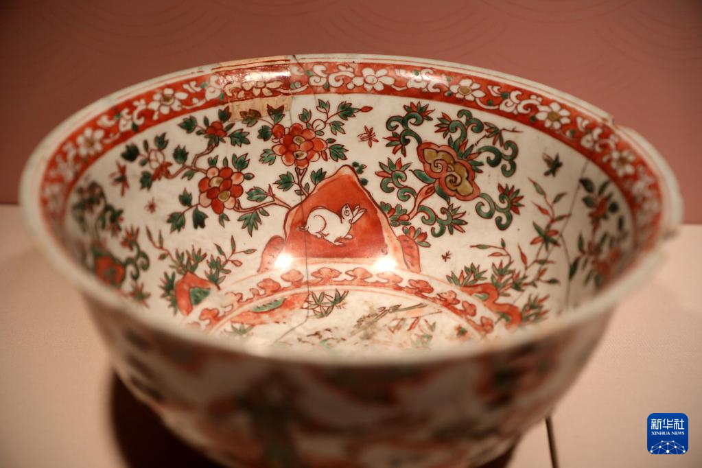 这是“玉兔迎春——生肖系列文化展”展出的明代五彩白瓷大碗(1月19日摄)。新华社记者姚剑锋/摄