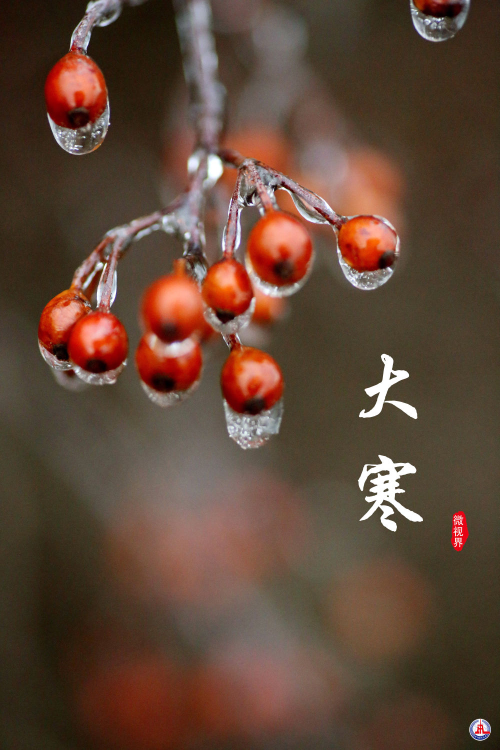 ↑江苏省连云港市,野生小红果上挂着冰。新华社发(王春 摄)