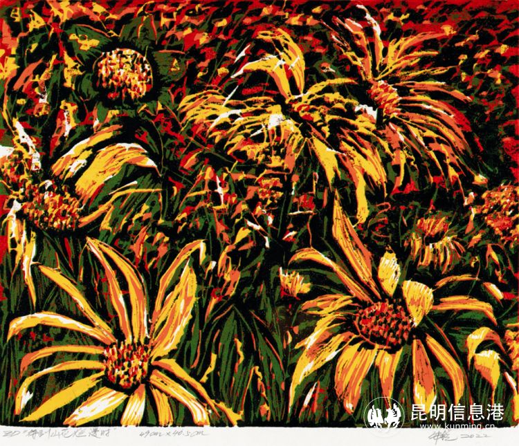 朱锐#《待到山花烂漫时》#版画#40.5cm×49cm