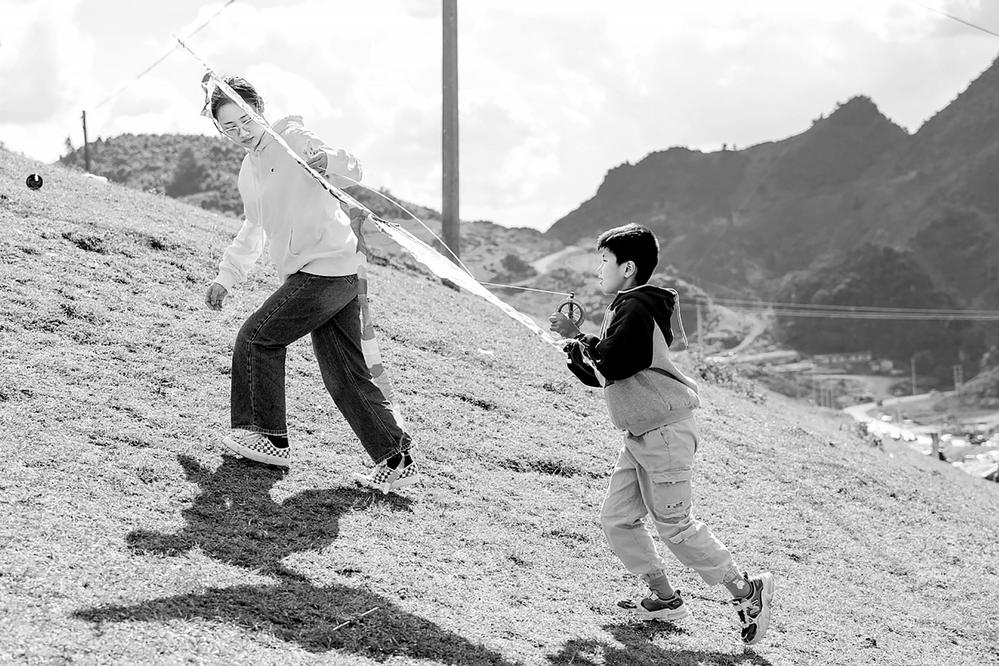 人们就像蜜蜂在红花里采蜜般,穿梭在一把把红伞下。逛累了就买杯麦芽茶或者柠檬水、带上几份小吃,到草地里选个好位置边吃边聊,很是惬意。有的人买了风筝带着小孩在草地里跟着清爽的风一起撒欢;有的人和布朗族阿哥阿妹一起在集市中载歌载舞;还有的人远远地支个天幕,约三五好友赏山野景色……