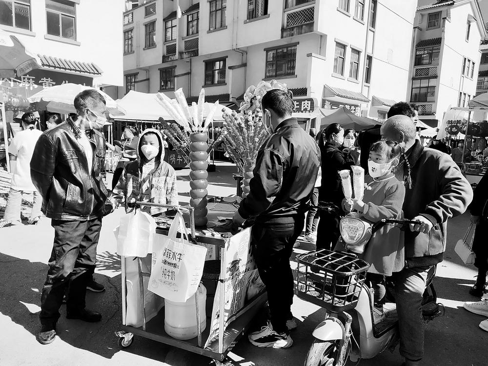 冬日暖暖的阳光温柔地洒在这热闹的集市里,也洒在人们幸福快乐的笑脸上。(春城晚报 记者 崔敏 通讯员 张碧露 梁逸帆)