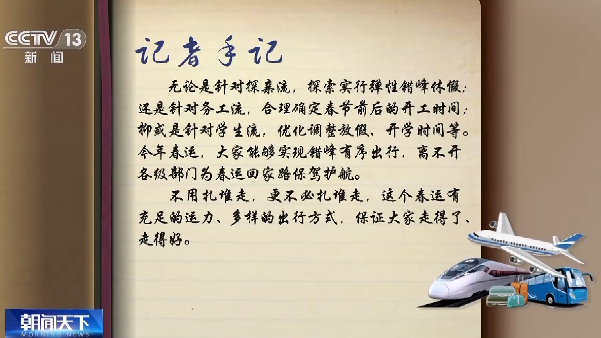 不用扎堆走,更不必扎堆走,这个春运有充足的运力、多样的出行方式,保证大家走得了、走得好。(总台央视记者 王琰 翟壮 丛威娜 陈晰 董羽 张喆)