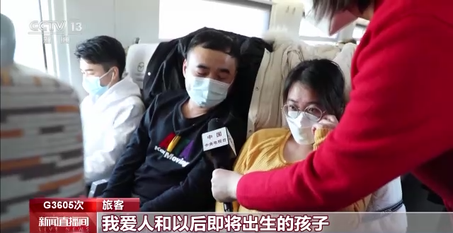 旅客:怀孕三个多月了。我就希望我爱人和以后即将出生的孩子,大家都健健康康。
