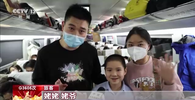 旅客:我们其实很盼望回家,今年先回我媳妇家这边,去看看她家里边的人,小孩也特别开心,一到了高铁站就很兴奋。