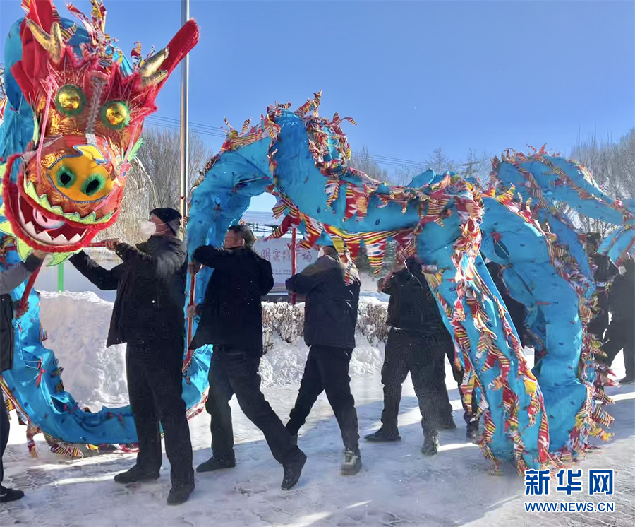甘河子镇居民正在舞龙。新华网发 张婧摄