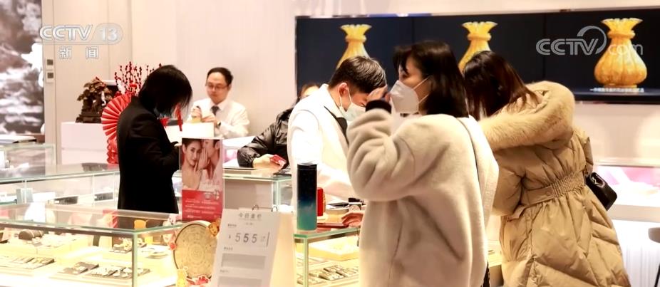在浙江宁波,各大商场推出的各种新春促销活动吸引了旺盛的人气,其中,黄金、首饰、珠宝等商品,成为许多消费者春节消费的重点。