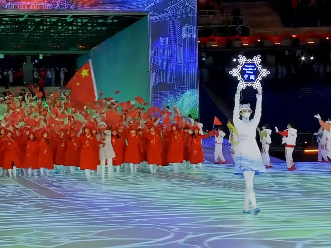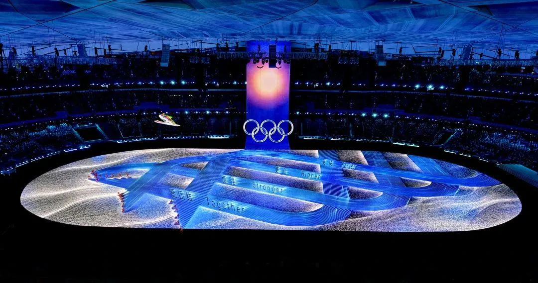 延续平昌冬奥会闭幕式上北京八分钟的“人机共舞”创意理念进行了多次技术迭代,最终在北京冬奥会开幕式上,结合以往大型演出活动中很少出现的实时人机交互系统,完美呈现出“致敬人民”与“一鸽都不能少”的人与影像实时互动效果。