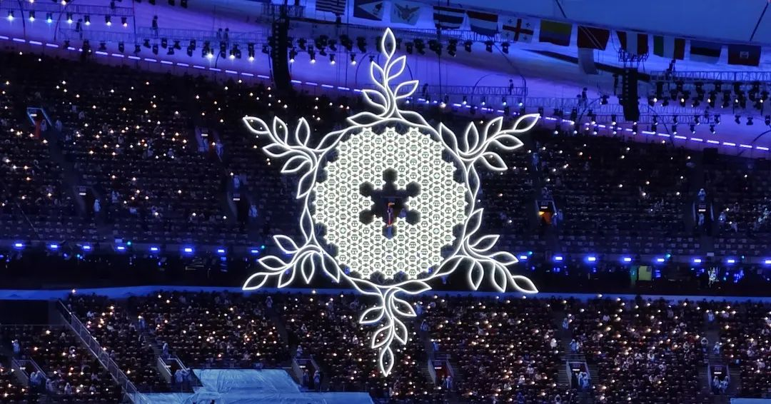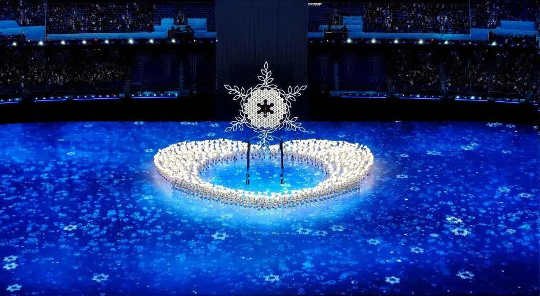 50万个发光点编程将雪花点亮,一朵朵“小雪花”连接成一朵“大雪花”,各参赛国家和地区名字在其间联结闪耀,全世界的雪花都汇聚于此,2022北京冬奥会开幕式的火炬台由此而生。