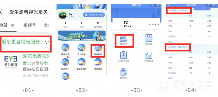 此外,凡是在昆明爱尔眼科医院建立屈光发育档案的儿童青少年,家长均可通过“爱尔患者视光服务”微信小程序,在线查看孩子的眼健康档案,通过数据对比、了解孩子的屈光发育情况。
