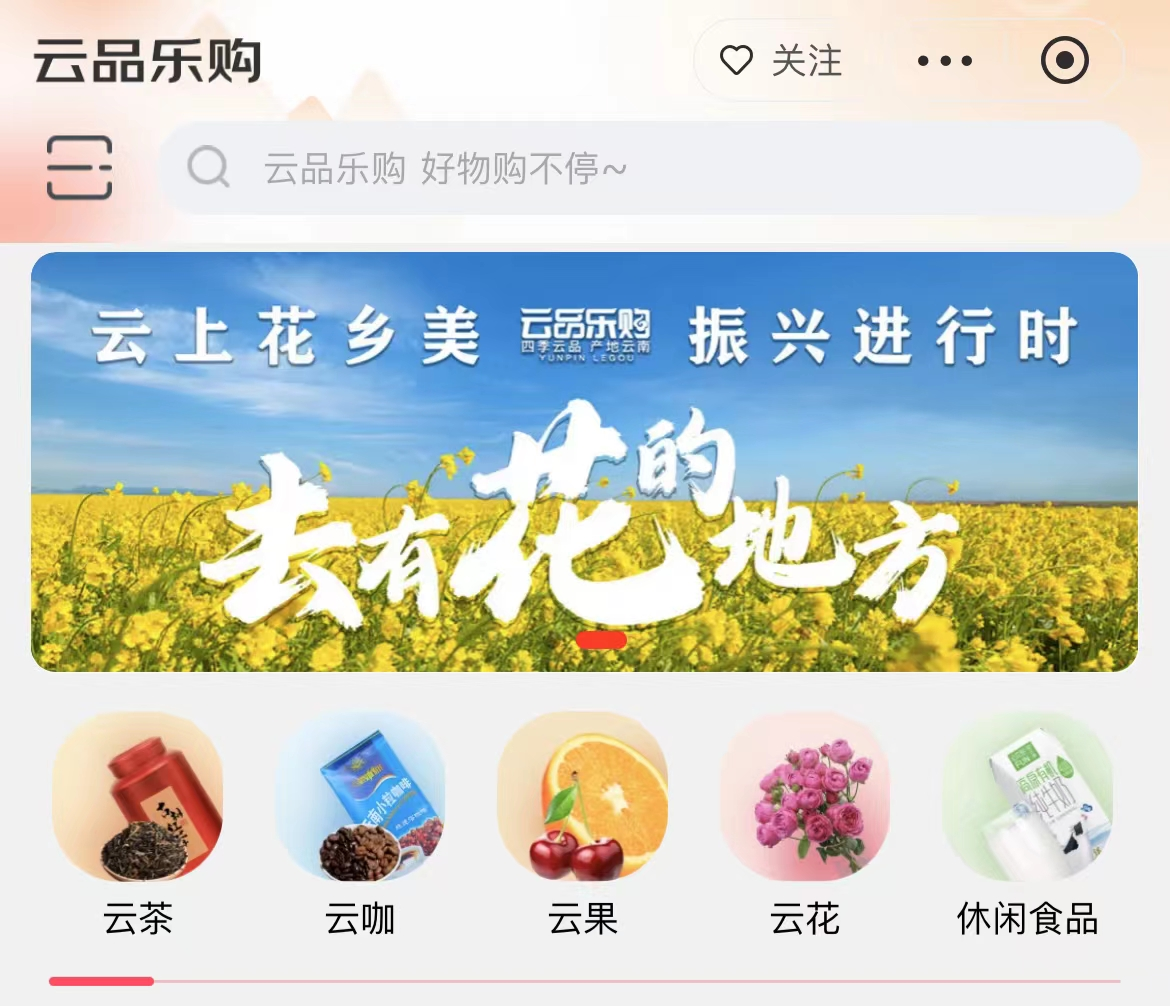活动同步在抖音开设#去有花的地方#话题,充分展现七彩云南金色油菜花田的壮美风光,展示罗平乡村振兴新风貌。在京东设置云品乐购“去有花的地方”专区以及“一部手机云品荟”APP和小程序,美团优选组织线下产销对接活动,线上线下结合展销云品。