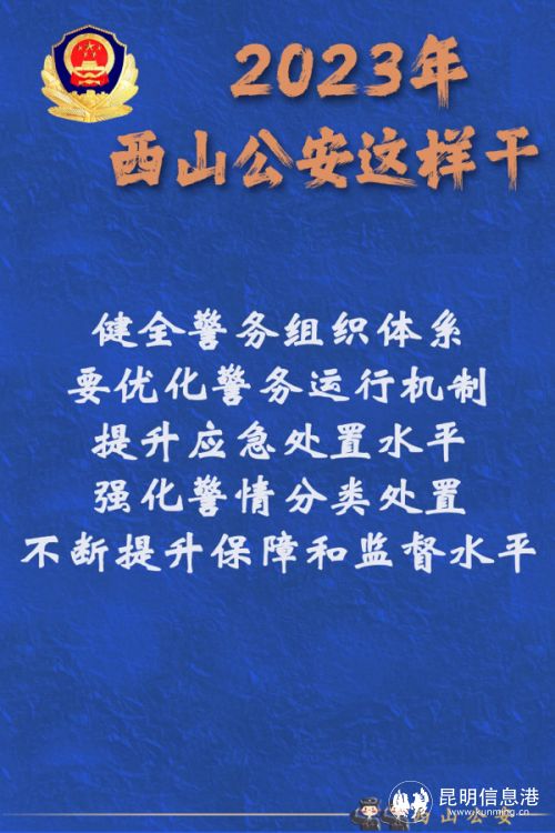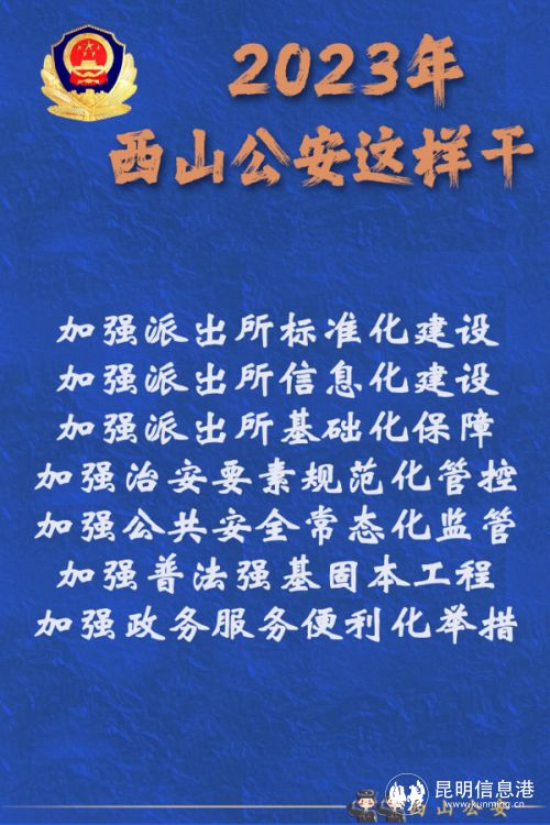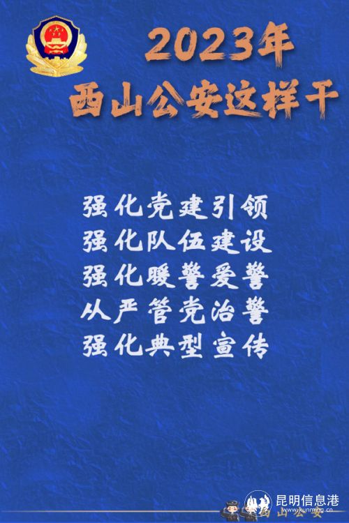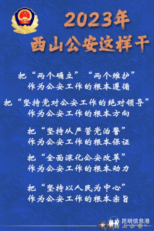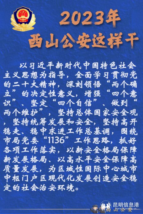 2023年,西山公安将以愚公移山的志气、滴水穿石的毅力和“起步就是冲刺、开局就是决战”的姿态,坚定不移朝着既定目标奋勇前进,为维护国家政治安全、确保社会大局稳定、促进社会公平正义、保障人民安居乐业作出新的更大贡献。(昆明信息港 记者合宇聪 西山警方供图)