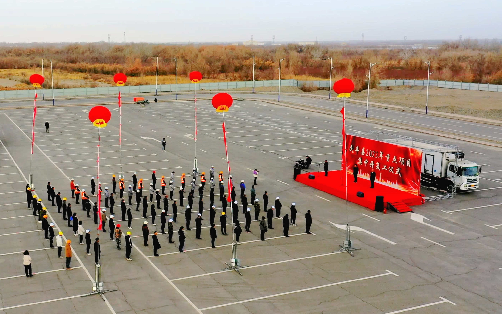 2月15日,民丰县2023年重点项目集中开复工仪式现场。