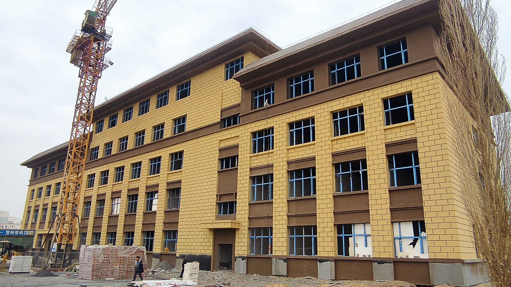 2月20日,鄯善县辟展镇卫生院业务综合楼建设工程现场,项目主体建设和外部装修已完成,工人们正紧锣密鼓地进行收尾工程。