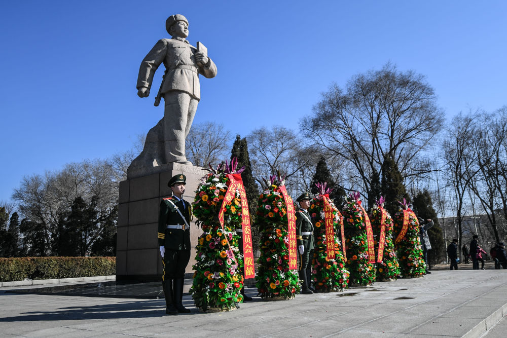 2018年3月5日,辽宁省抚顺市在雷锋纪念馆广场举行活动,缅怀雷锋同志并号召人们学习雷锋精神。新华社记者 潘昱龙 摄