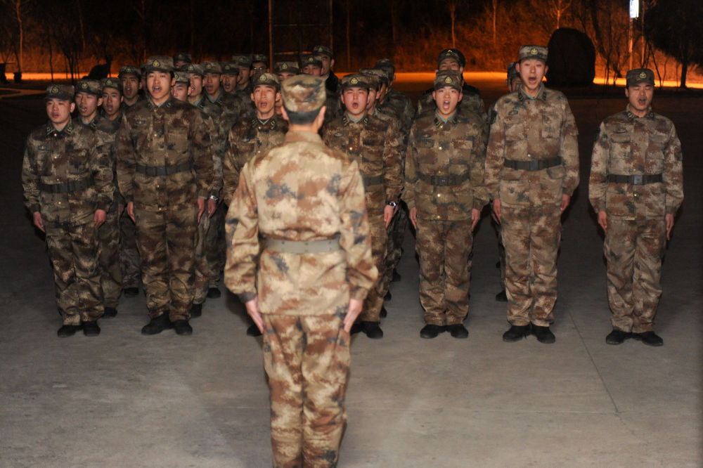 2012年4月7日,“雷锋连”进行晚点名。每天晚点名,第一个呼点的是“雷锋”,由全连官兵齐声应答。新华社记者 李鑫 摄