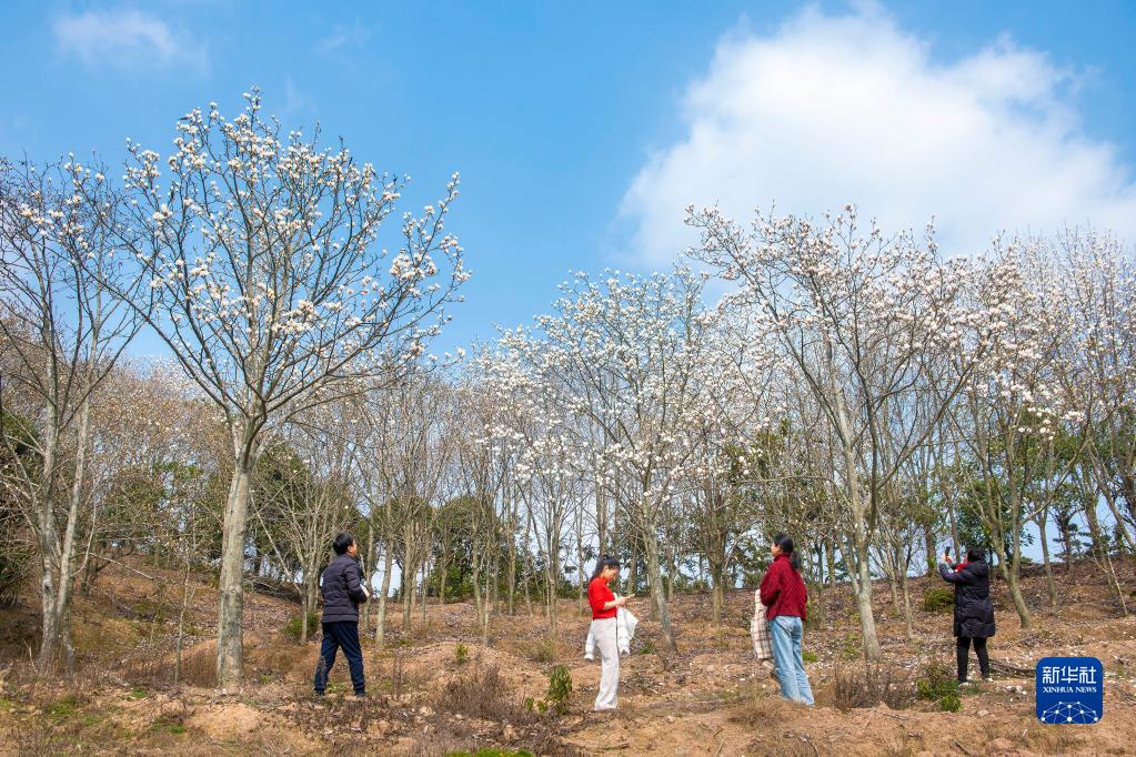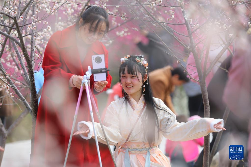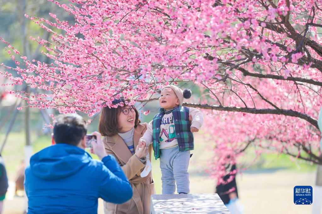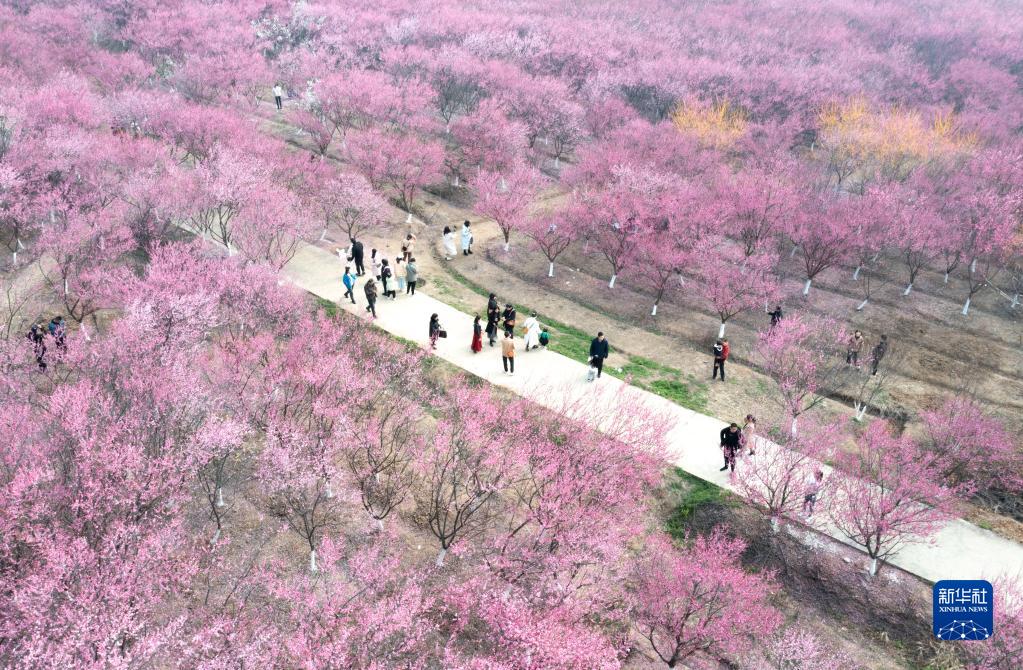 2月26日,人们在湖南省邵阳市隆回县七江镇守拙园直播赏花。